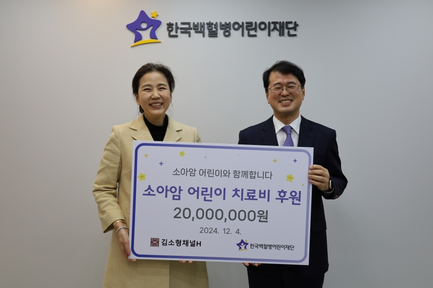 12월 4일, 채널에이치네트워크 김소형 한의학 박사가 소아암 어린이 후원금 20,000,000원을 한국백혈병어린이재단에 전달했습니다.