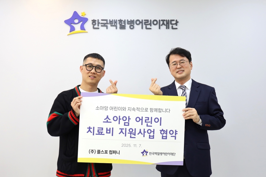 11월 7일, 투자 교육 콘텐츠 전문 기업 (주)플스포컴퍼니(김동호 대표)와 한국백혈병어린이재단이 소아암 어린이 치료비 지원을 위한 기부 협약을 체결했습니다.
