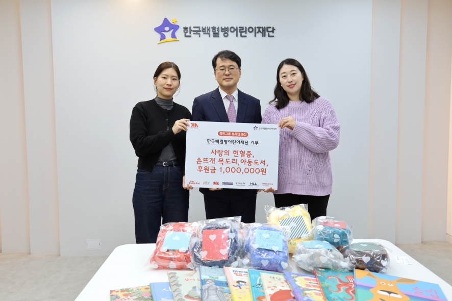 2025년 12월 16일, 중앙그룹 임직원 봉사단 '중심'에서 소아암 어린이를 위해 치료비 100만 원과 헌혈증, 아동도서, 그리고 임직원들이 손수 만든 뜨개목도리를 한국백혈병어린이재단에 전달했습니다.