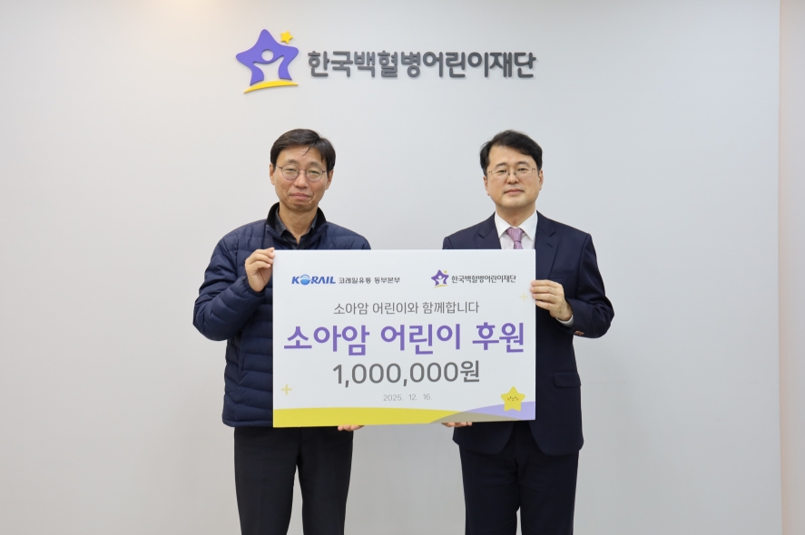 2025년 12월 19일, 코레일유통 동부본부에서 소아암 어린이 치료비 지원을 위해 기부금 100만 원을 한국백혈병어린이재단에 전달했습니다.