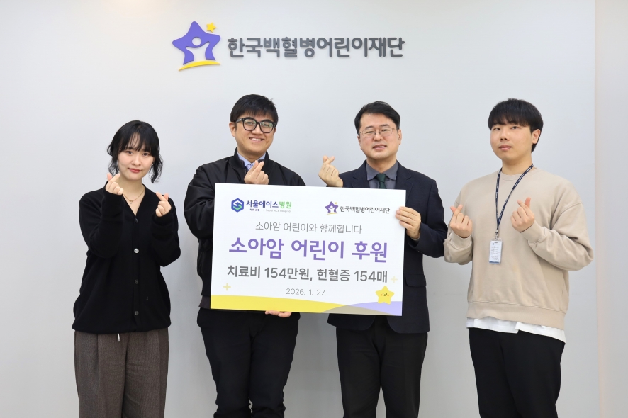 2026년 1월 27일, 관절·척추 치료 병원인 서울에이스병원에서 소아암 어린이를 위해 치료비 154만 원과 헌혈증 154매를 전달했습니다.