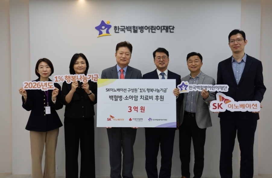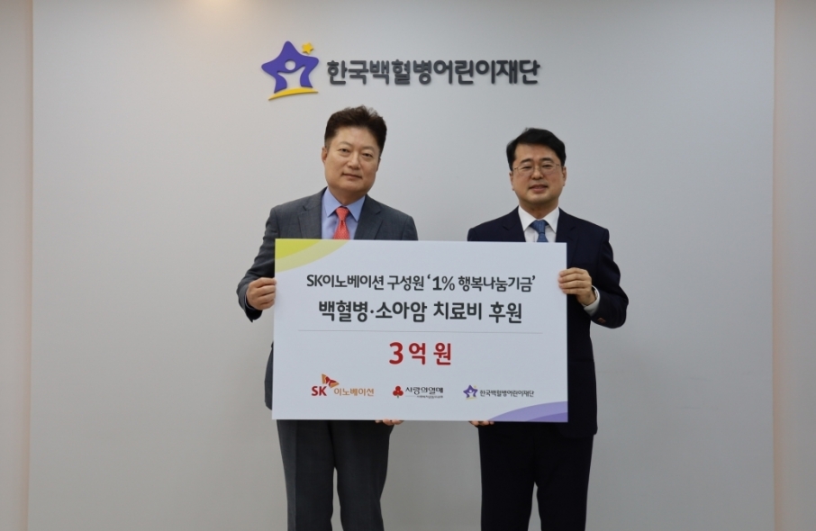 이번 기부금은 SK이노베이션 계열 구성원들이 기본급의 1%를 모아 마련한 기금으로, 백혈병·소아암 어린이들의 치료비 지원을 위해 전달되었습니다.