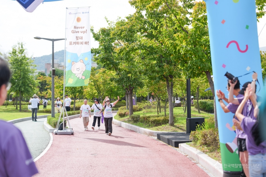 또한 3km, 5km의 걷기 코스 곳곳에는 소아암 어린이를 응원하는 미니 배너가 설치되어 참가자들의 발걸음을 힘차게 북돋았습니다.