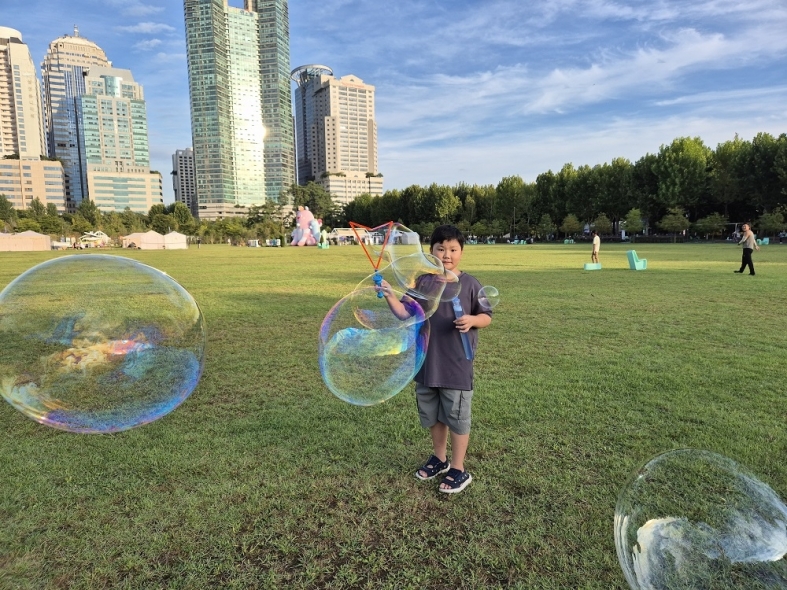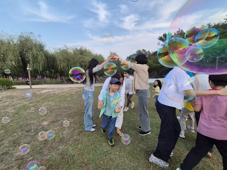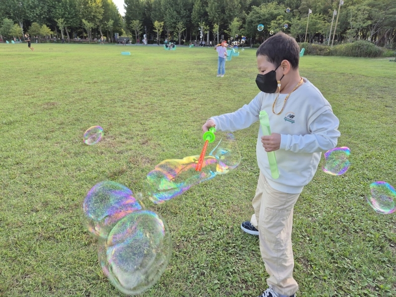 푸른 잔디 위에서 친구들과 이야기도 많이 나누고, 게임도 하고, 꿈을 담은 비행기와 비눗방울을 날리며 즐거운 시간을 보냈습니다.