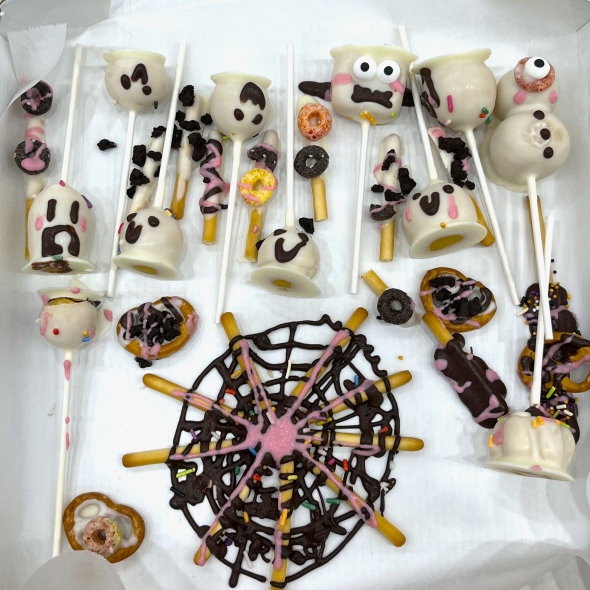 그 위에 다양한 재료로 개성 있게 꾸며 나만의 특별한 할로윈 케이크팝을 완성했답니다!