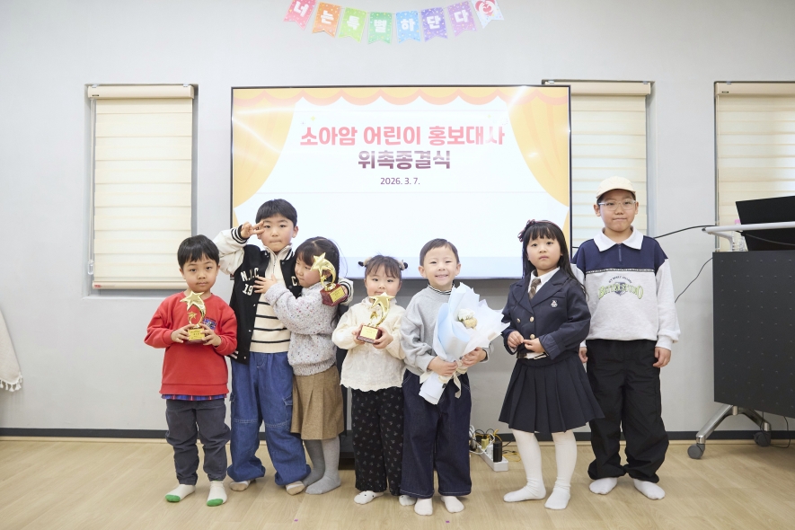 소아암 어린이를 대표하여 올바른 인식과 관심을 높이는 자랑스러운 활동에 함께할 어린이 홍보대사에게 많은 관심과 응원 부탁드립니다!
