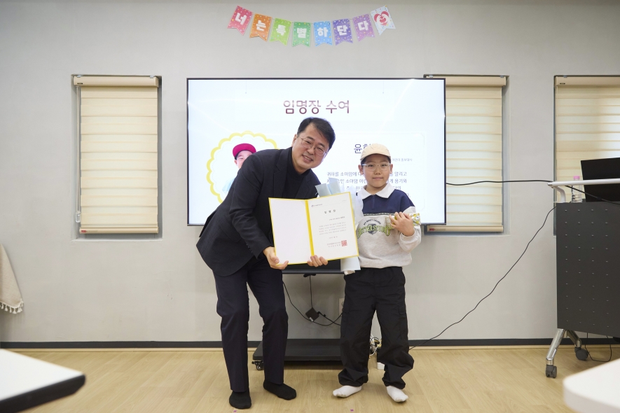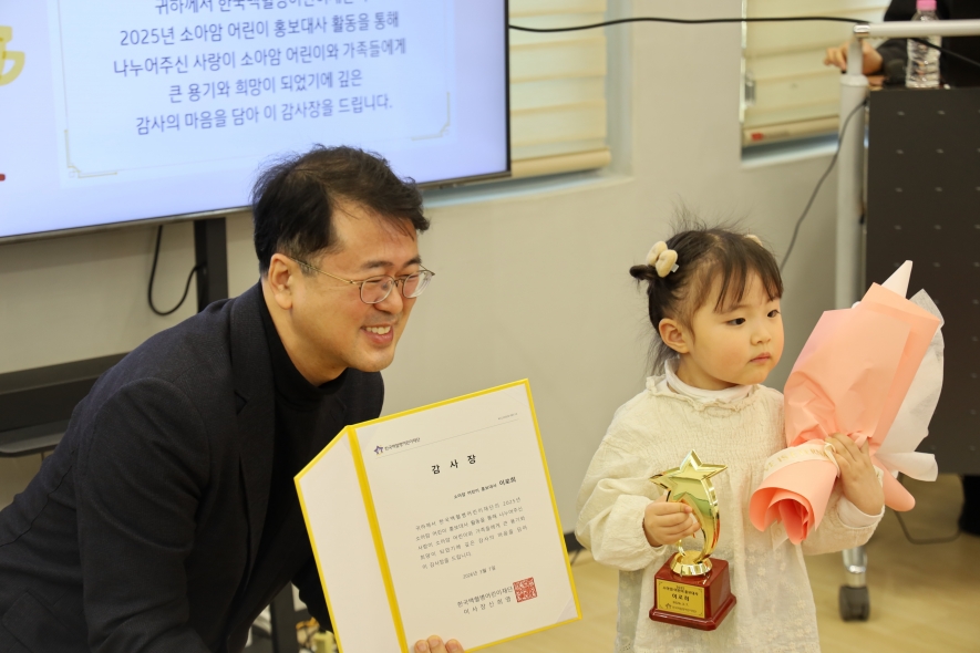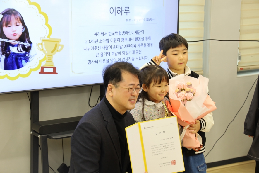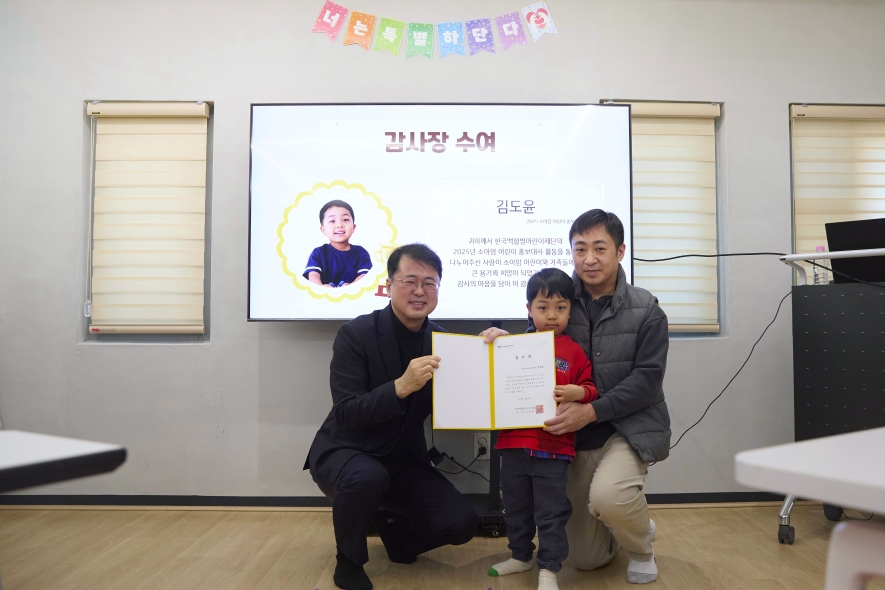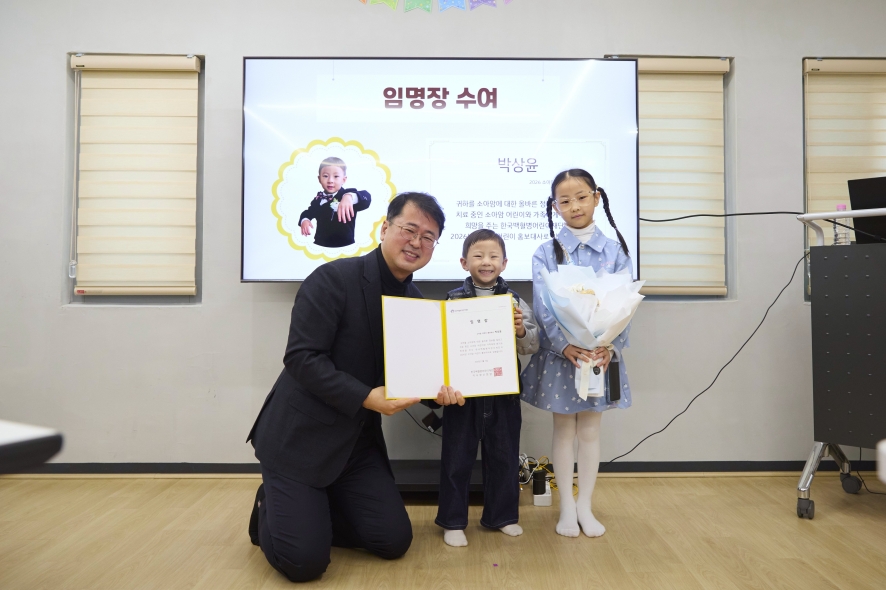 2025년 한 해 동안 다양한 활동을 통해 많은 사람들에게 희망과 사랑을 전해준 김도윤, 이로희, 이하루 어린이 홍보대사와 가족분들,