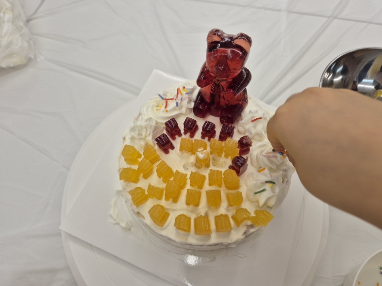 ♣ 키즈베이킹 : 3월 키즈베이킹 시간에는 오렌지주스와 크랜베리 주스를 활용해 수제 젤리를 만들고, 케이크를 직접 샌딩, 아이싱한 뒤 직접 만든 젤리로 예쁘게 데코해보는 시간을 가졌습니다. 아이들의 정성과 창의력이 더해져 세상에서 하나뿐인 달콤한 케이크가 완성되었습니다. 다가오는 4월 21일에는 봄을 맞아 ‘벚꽃 컵케이크 만들기’ 프로그램이 진행될 예정입니다. 따뜻한 봄날처럼 설레는 시간이 될 것으로 기대됩니다.