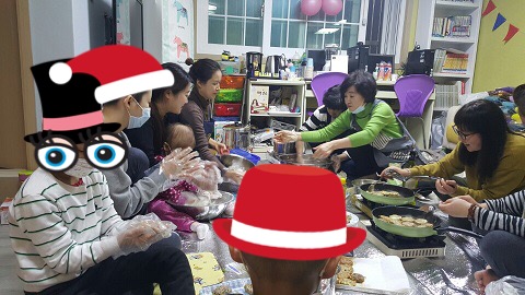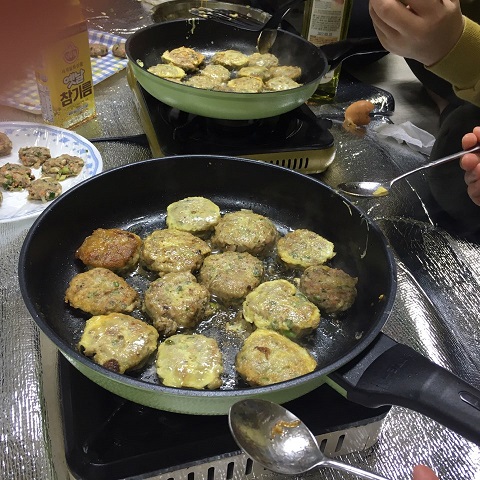함께 둘러앉아 서로의 안부를 물으며 팥죽과 동그랑땡을 만드니 왠지 모르게 명절 분위기가 납니다.