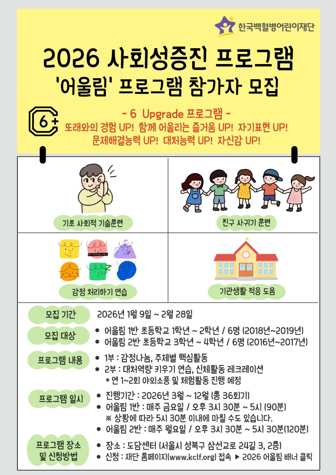 - 어울림 2반 초등학교 3~4학년 / 아동 6명 (2016년~2017년) → 2026년도 기준